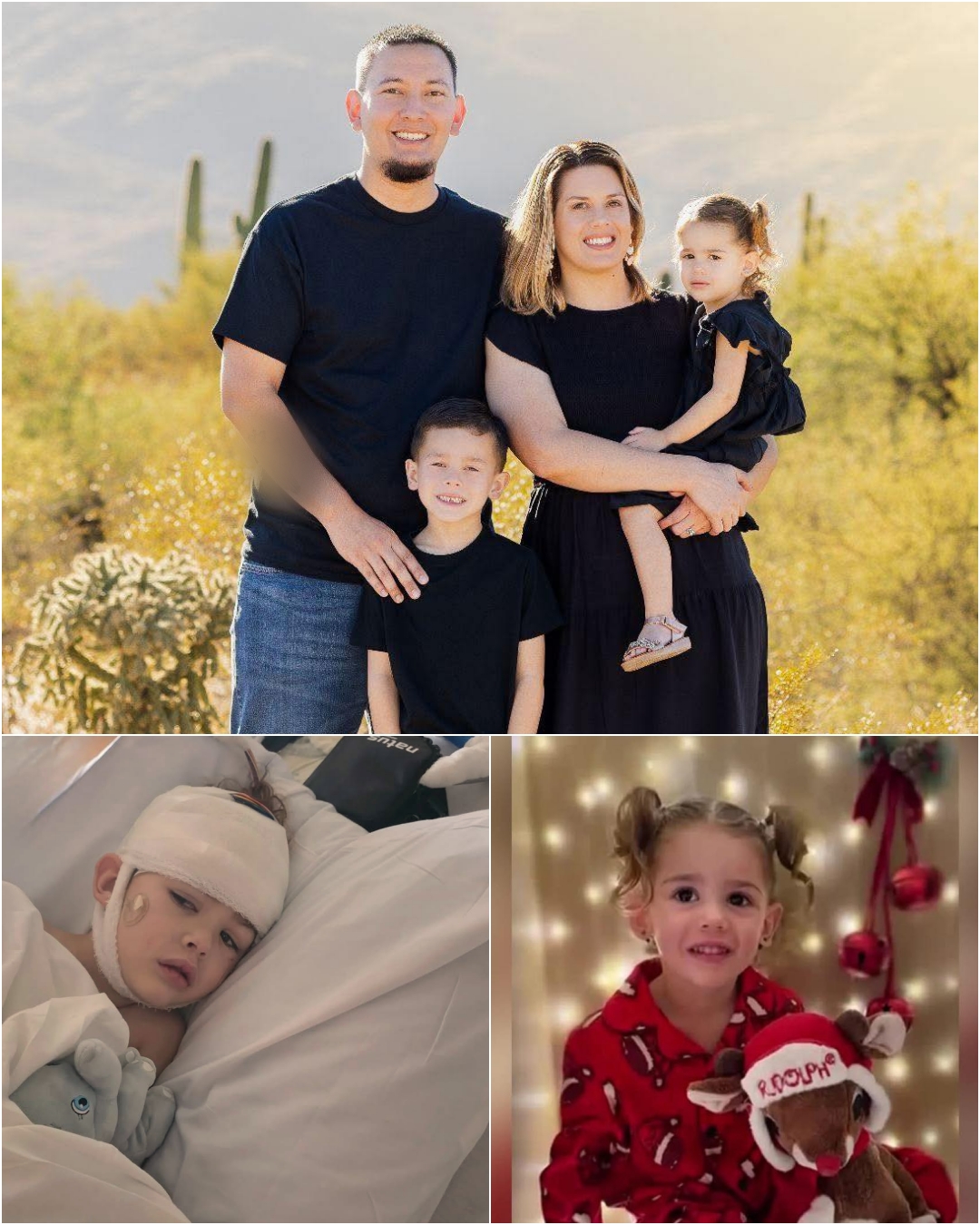 On Christmas Day, Harper’s parents, Ryan and Randi, noticed something deeply wrong. Their energetic little girl began to stumble. She stopped using the left side of her body. Her words faded into confusion, then silence. Panic set in quickly — this was no longer “just the flu.”