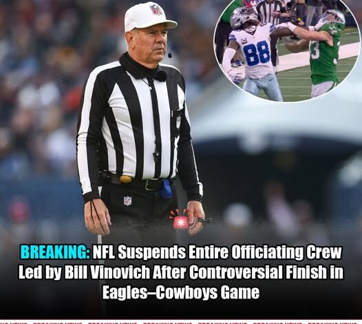 The NFL issued a rare and sweeping suspension of the entire officiating crew led by Bill Vinovich following the controversial ending to the Eagles–Cowboys Week 12 matchup. The league confirmed that multiple officiating errors “materially impacted competitive fairness,” marking one of the strongest disciplinary responses in recent years.